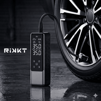 The RAVPOWER RP-PB1233 3-in-1 Smart Air Compressor combines a powerful portable air pump, a built-in power bank, and an LED flashlight in one compact device. Designed for convenience and emergency use, it offers cordless operation, easy pressure monitoring through the LCD screen, and automatic shut-off once the desired pressure is reached.